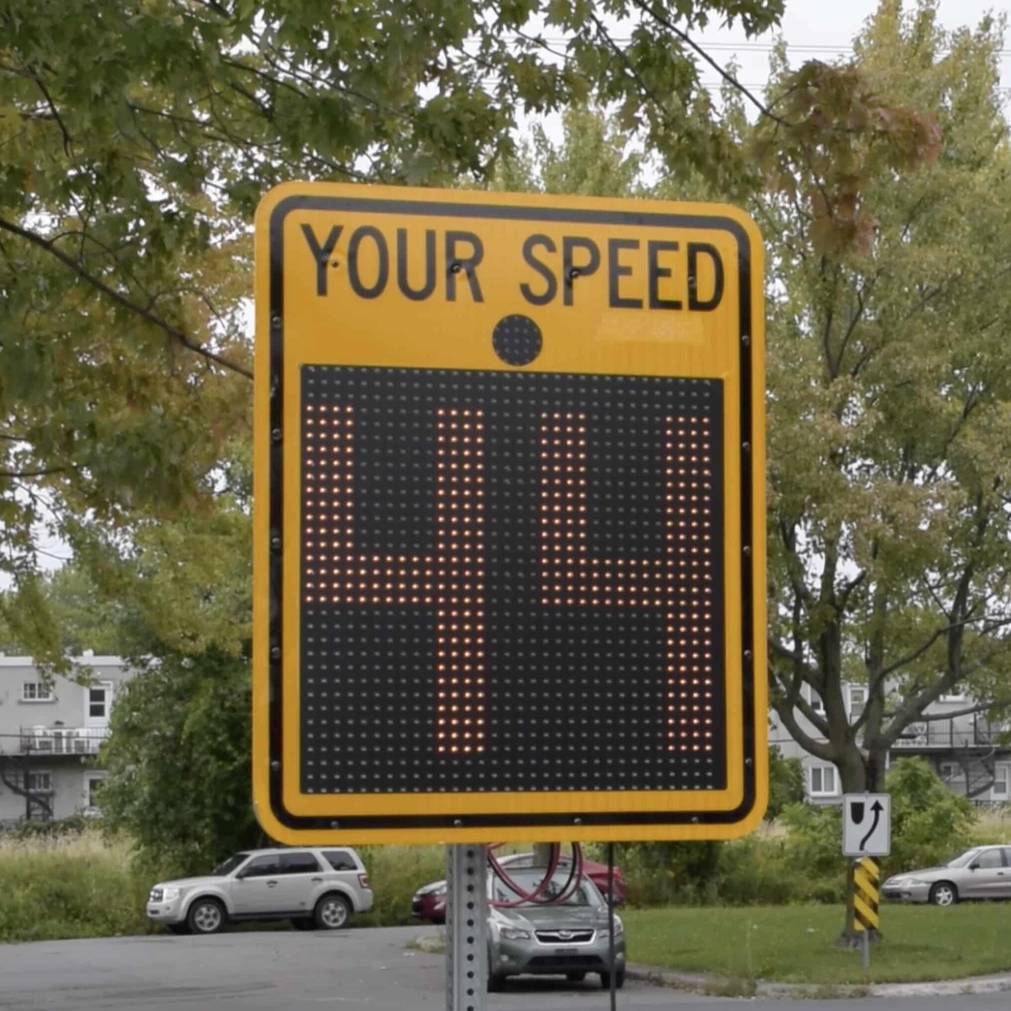 The flexible sign offers the ability to display either driver speed including speed activated digit color changes or your choice of driver responsive text or graphics on the full matrix speed display sign.