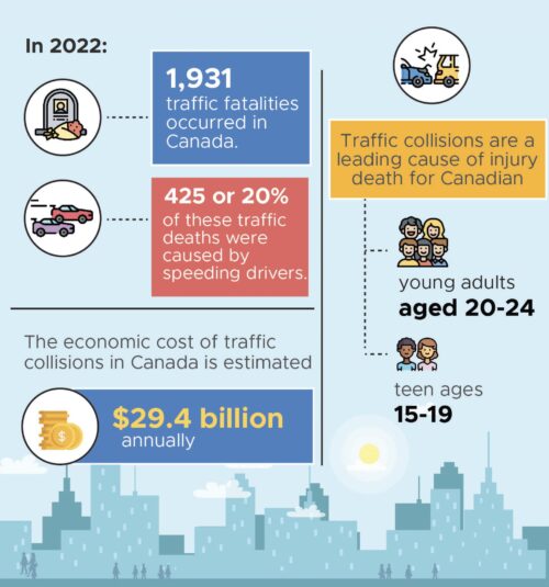 Speeding is a major problem on Canadian roads, contributing significantly to accidents, injuries, and fatalities.