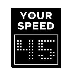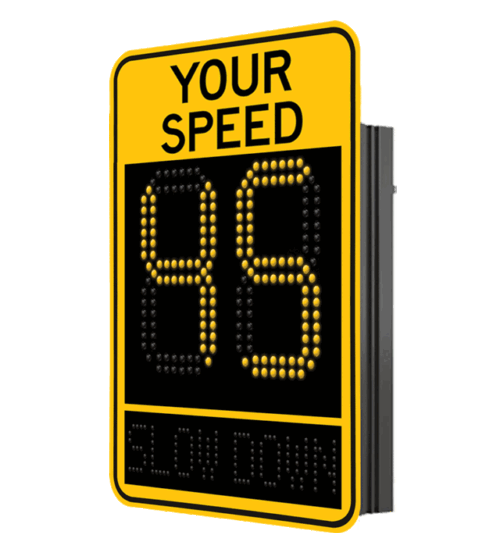 It displays driver speeds and includes speed-activated messaging to warn speeders.