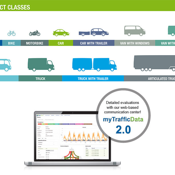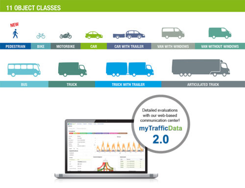 The lightweight, portable traffic counting system can be used at intersections, and roundabouts. It offers full coverage of traffic entering and exiting an intersection, up to eight lanes and four directions. All data can be accessed remotely including detailed statistics, robust reporting, visual charts and graphs offering valuable insights into driving behavior and trends.