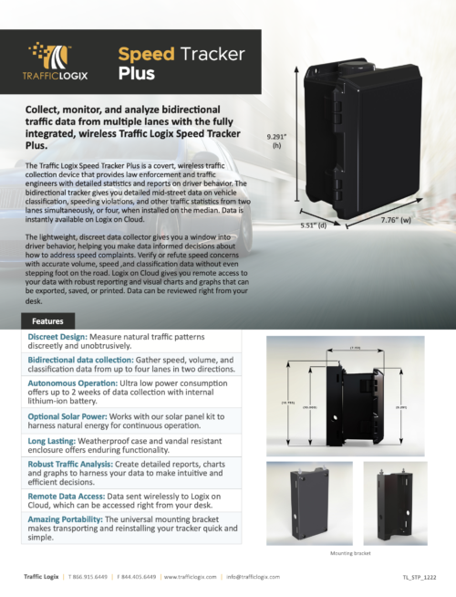 The lightweight, discreet data collector gives you a window into driver behavior, helping you make data informed decisions about how to address speed complaints. Verify or refute speed concerns with accurate volume, speed ,and classification data without even stepping foot on the road. Logix on Cloud gives you remote access to your data with robust reporting and visual charts and graphs that can be exported, saved, or printed. Data can be reviewed right from your desk.